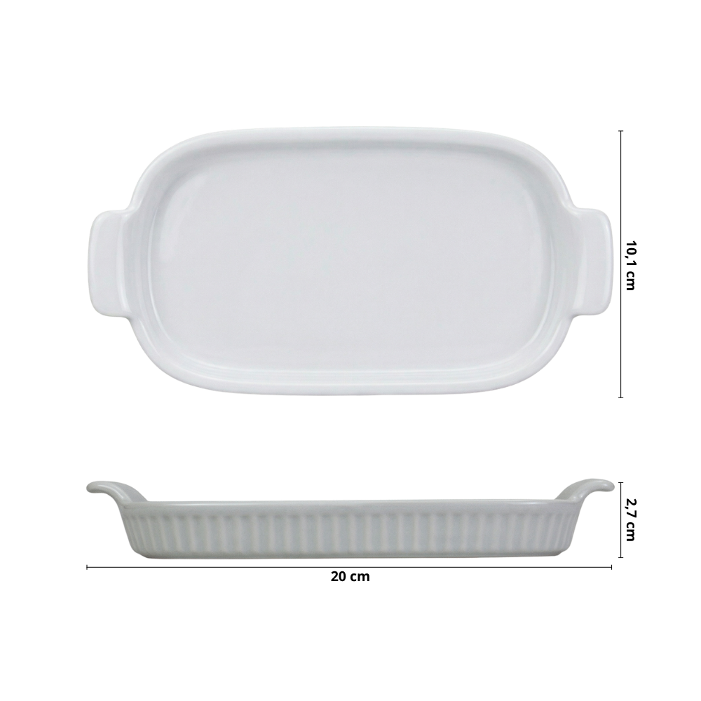 A Bandeja Retangular em Porcelana é ideal para preparar, assar e servir com praticidade e elegância. Seu formato versátil permite o preparo de diversas receitas, indo do forno diretamente à mesa.