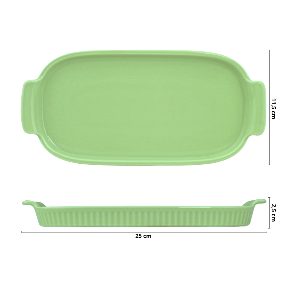 Bandeja Retangular M em Porcelana Verde Chá – 25cm