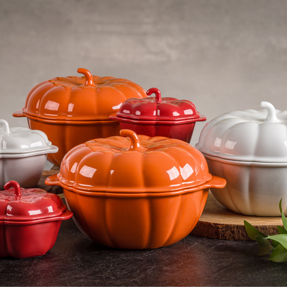 A Cocotte Abóbora em Porcelana é ideal para preparar, assar e servir com praticidade e elegância.