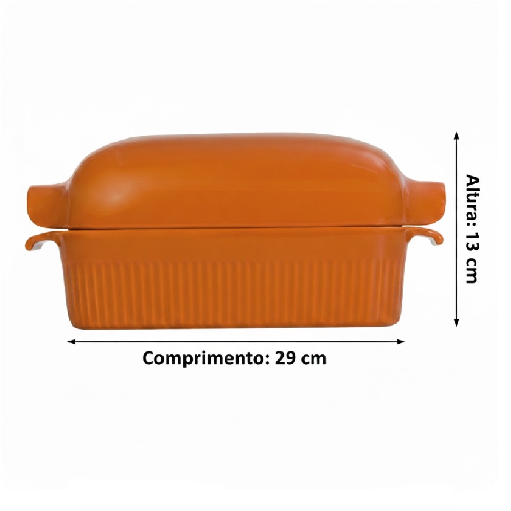 Forma de Pão com Tampa Refratária 29 cm Laranja 1,1 L