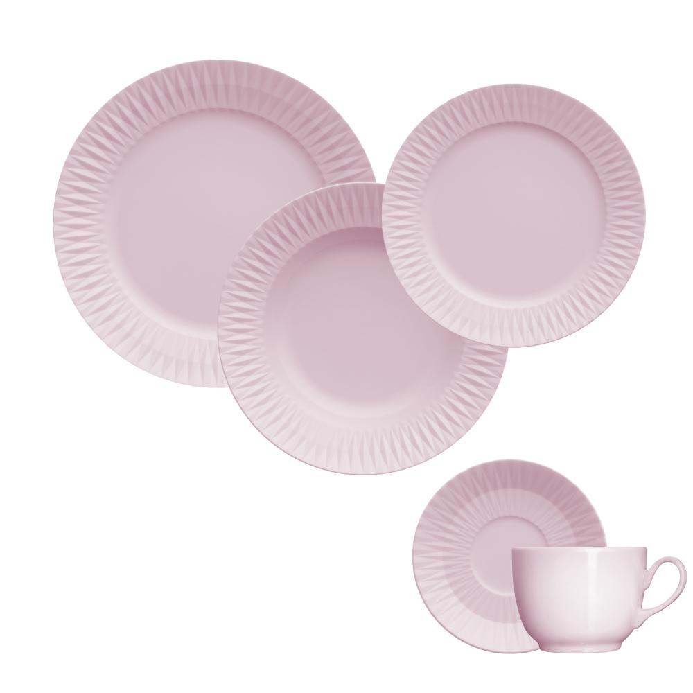 Jogo Jantar Chá 30 Peças Diamante Rosa Germer Porcelanas