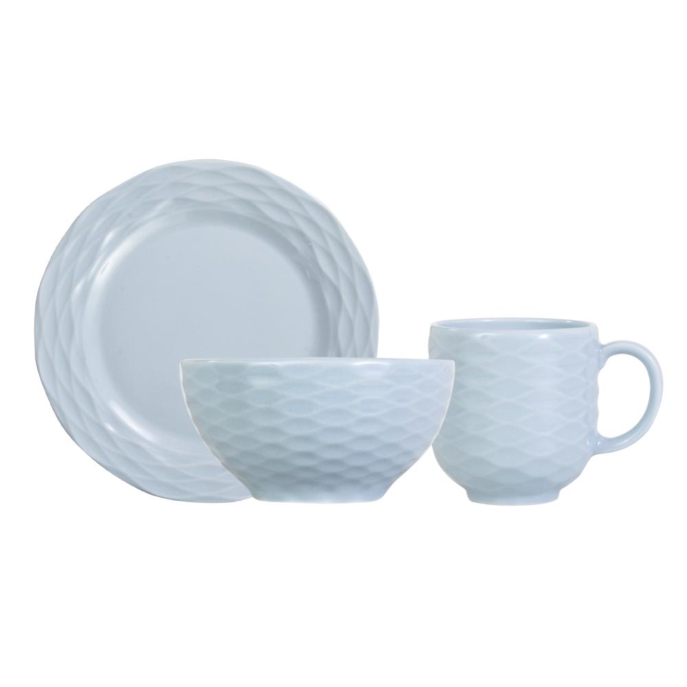 Jogo de Jantar 12 Peças Branco Relevo Ondas
