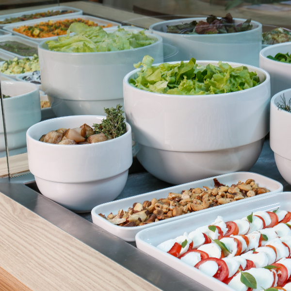 A linha Buffet Pro é a escolha certa para organizar pistas frias e quentes de buffets. Destaca-se por seu sistema de empilhamento e design unificado, proporcionando uma ótima apresentação dos alimentos e facilitando o armazenamento e organização.