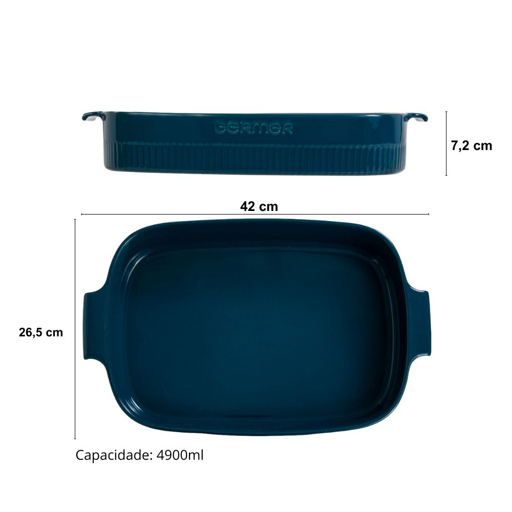 Travessa Refratária Retangular 37×26 Verdigris 4900 ml