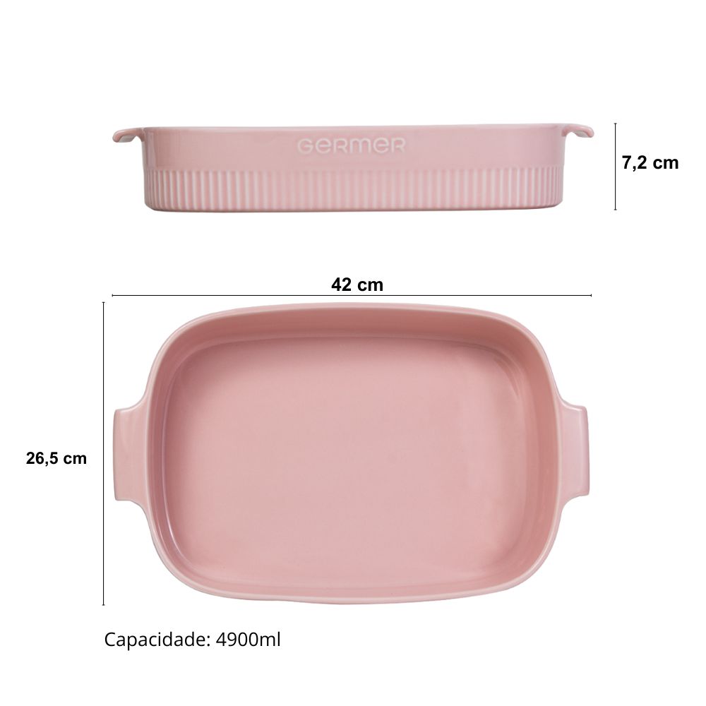 Travessa Refratária Retangular 37×26 Rosa Fractal 4,9 L